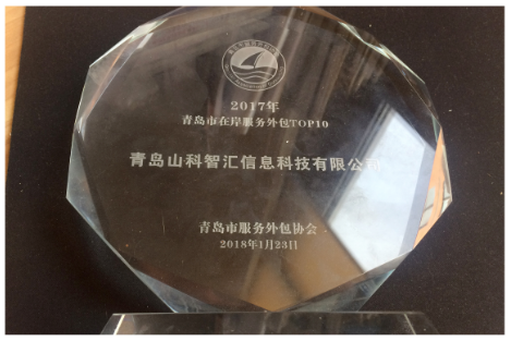 青島山科智匯公司榮獲“青島市在岸服務(wù)外包 TOP10”稱號