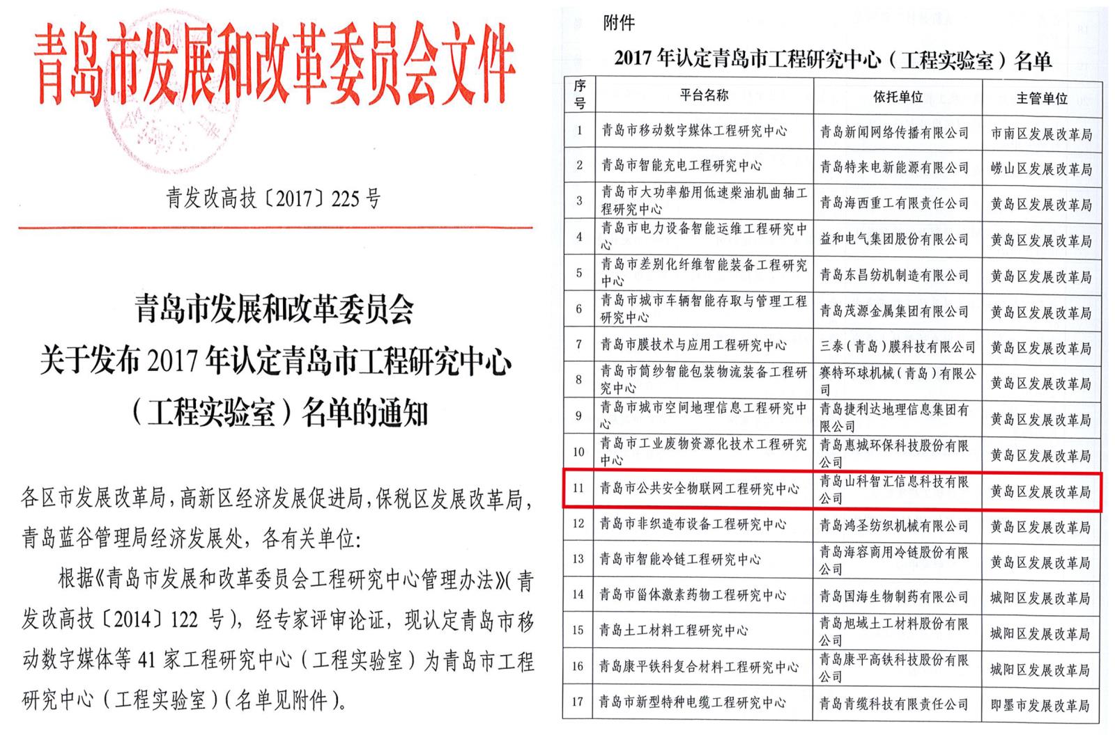 青島山科智匯信息科技有限公司獲評(píng)“青島市工程研究中心”
