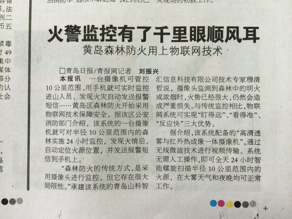 青島日報對我公司進行報導:盯得遠看得準反應快 黃島森林防火用上了物聯(lián)網(wǎng)