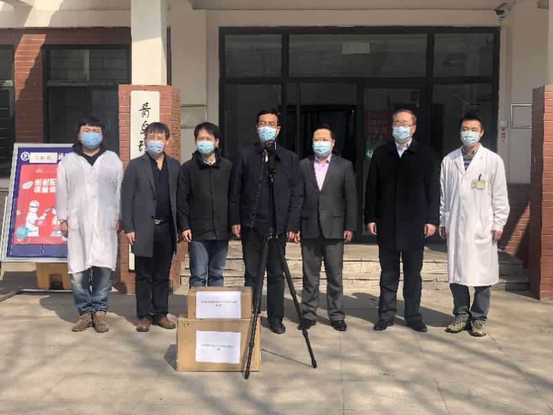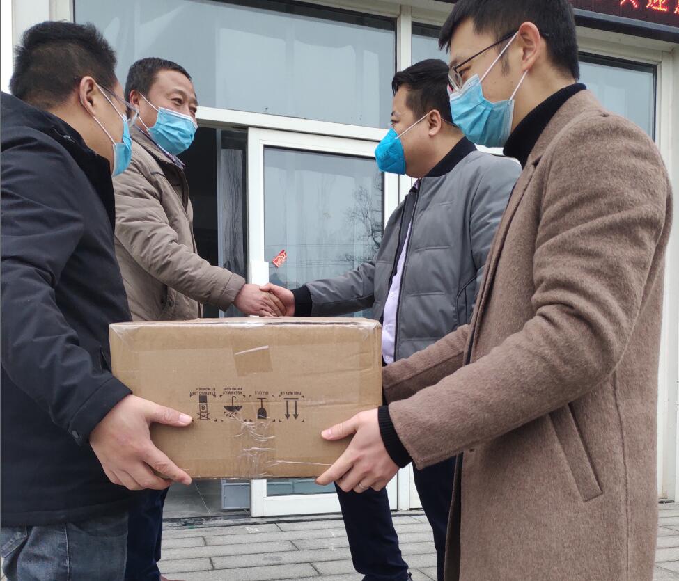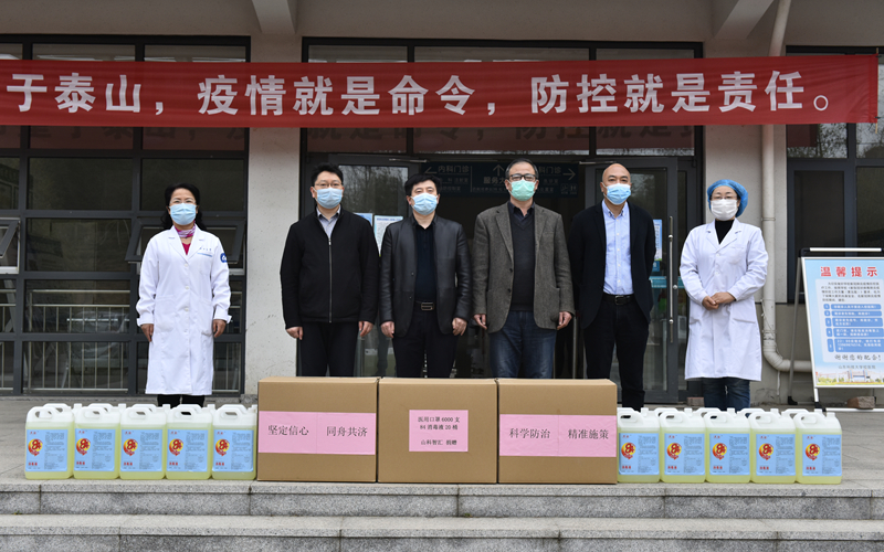 崔建明代表公司向山東科技大學捐贈一批防疫物資